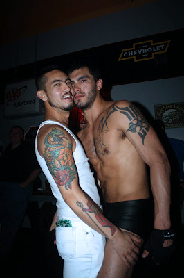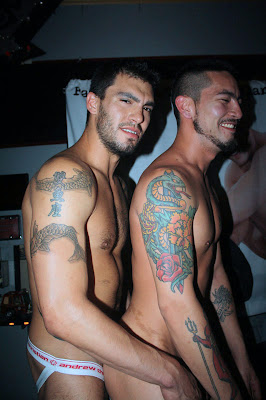 Sage Daniels, Cory Koons and Brad McGuire, getting down to it at a Treasure Island Media party in San Francisco. These are not stills from a video shoot, they’re just photos taken at the party. On his blog Cory describes working with T.I.M.: “It was less like porn and more like sex than anything I have ever done with a video camera and lighting before.”