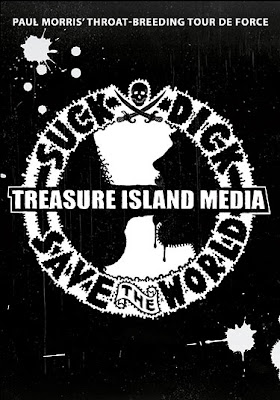 It’s that cocksucking drawing again, this time gracing the temporary* cover design for Paul Morris’s new cum-swallowing video Suck Dick, Save the World, due for release very soon. A pre-release scene is already available to download here.