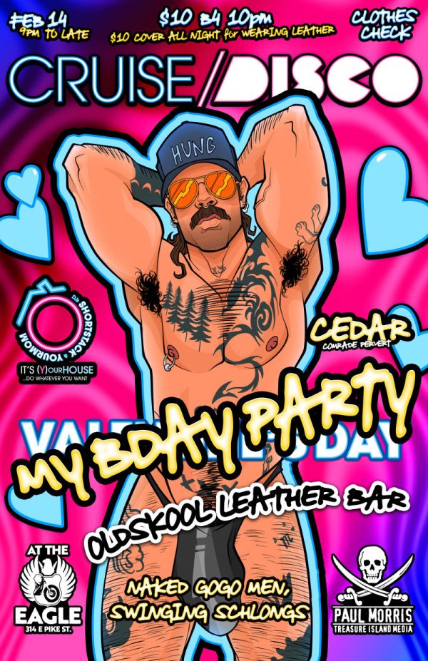 Date and Time of the Party: Saturday, Feb 14 | 9 PM | at the Seattle Eagle (314 Pike Street)